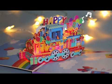 Musikalische Pop-up-Geburtstagskarte „Regenbogenzug“ mit Musik und Lichtern